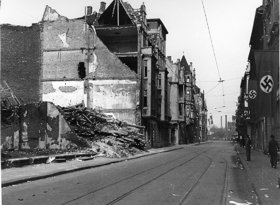 geschmückte, bombenzerstörte Straße in Herne (StadtA Herne)In der Archäologie hat sich eine inhaltliche Verbindung mit den geschichtswissenschaftlichen Themen und Interessen herausgebildet. Neben der Erforschung und Dokumentation von Burgen und Adelssitzen im Raum Hagen sind es vor allem die Untersuchung, Dokumentation und Interpretation archäologischer und bauhistorischer Relikte aus der Neuzeit und dem Zweiten Weltkrieg. Daneben liegt der Fokus auf die Untersuchung steinzeitlicher Funde, und hier besonders von 'exotischen' Rohstoffen zur Werkzeugherstellung, sowie auf die Besiedlungsgeschichte des Ruhr-Lenne-Volme-Raumes. Ein wichtiges Aufgabenfeld ist dabei auch die enge Zusammenarbeit mit der Bodendenkmalpflege.